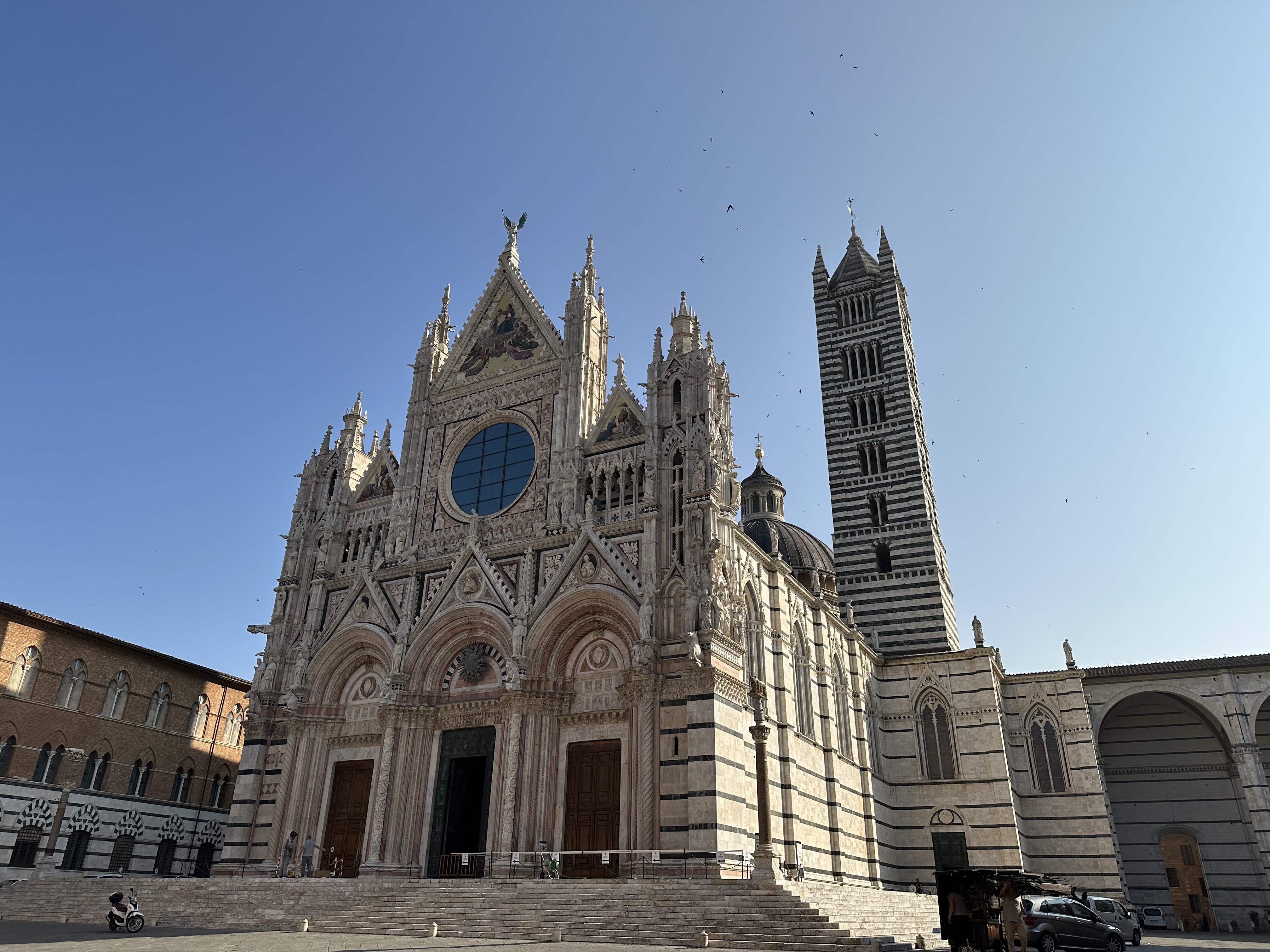 시에나에 도착해 가장 먼저 시에나 두오모 성당을 찾았다. 오랜 역사를 품은 아름다운 성당으로, 내부에는 미켈란젤로의 조각과 섬세한 바닥 모자이크가 있다. 다만 이번 투어에는 성당 내부 관람이 포함되지 않아 다음 장소로 이동했다.