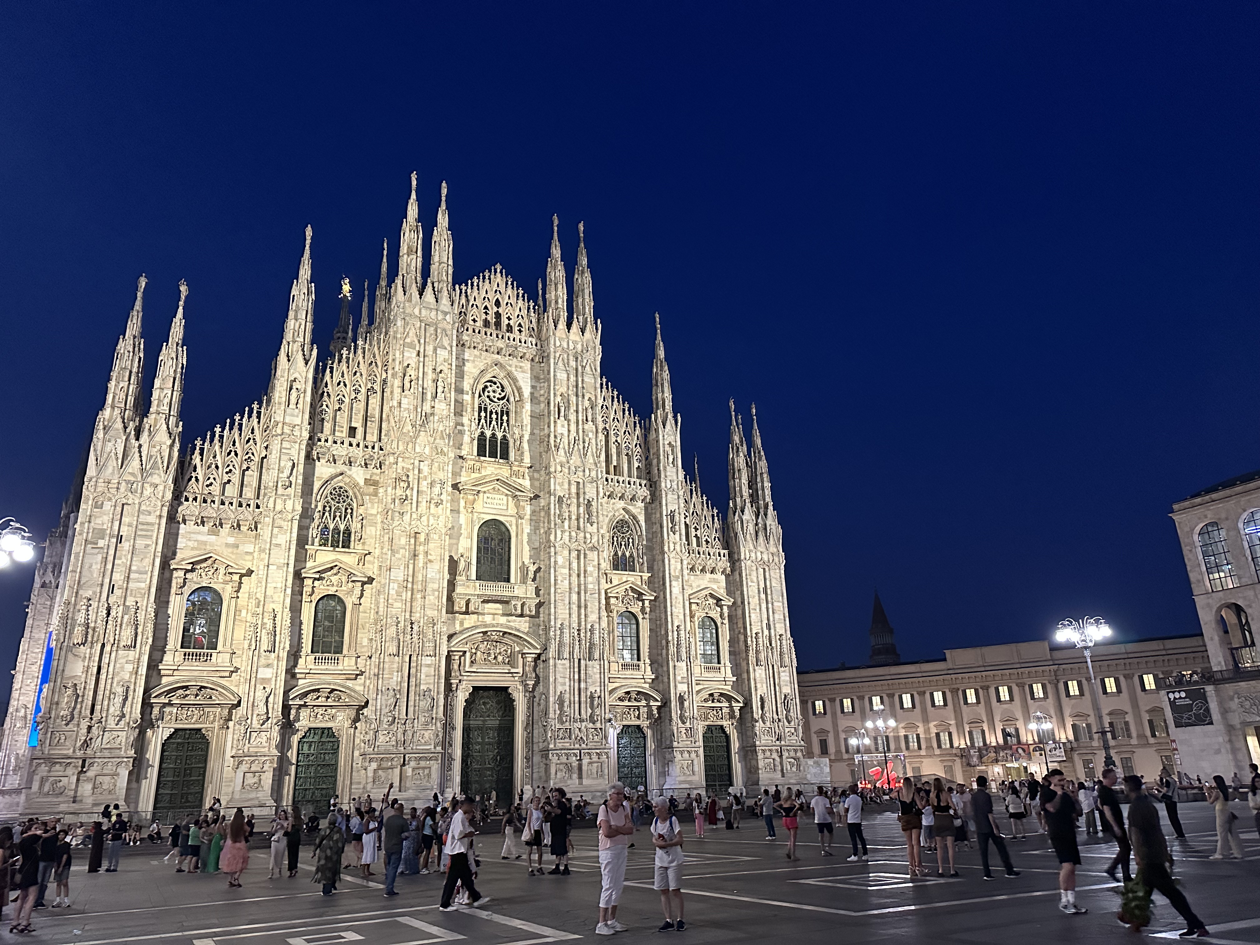 이후 호텔에 맡겨둔 짐을 찾고 간단히 저녁을 먹은 뒤, 밀라노행 기차에 올랐다. 도착했을 때는 이미 해가 저물어 있었고, 호텔로 가던 길에 조명이 켜진 밀라노 두오모를 볼 수 있었다. 낮에 보던 모습과는 또 달리 한층 화려하게 빛나 보였다.
